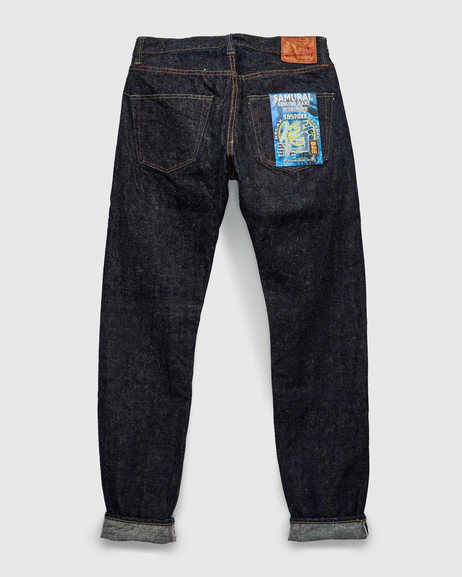 - Button fly with custom branded iron buttons, featuring Samurai's logo and the mitsudomoe - a shinto symbol associated with war