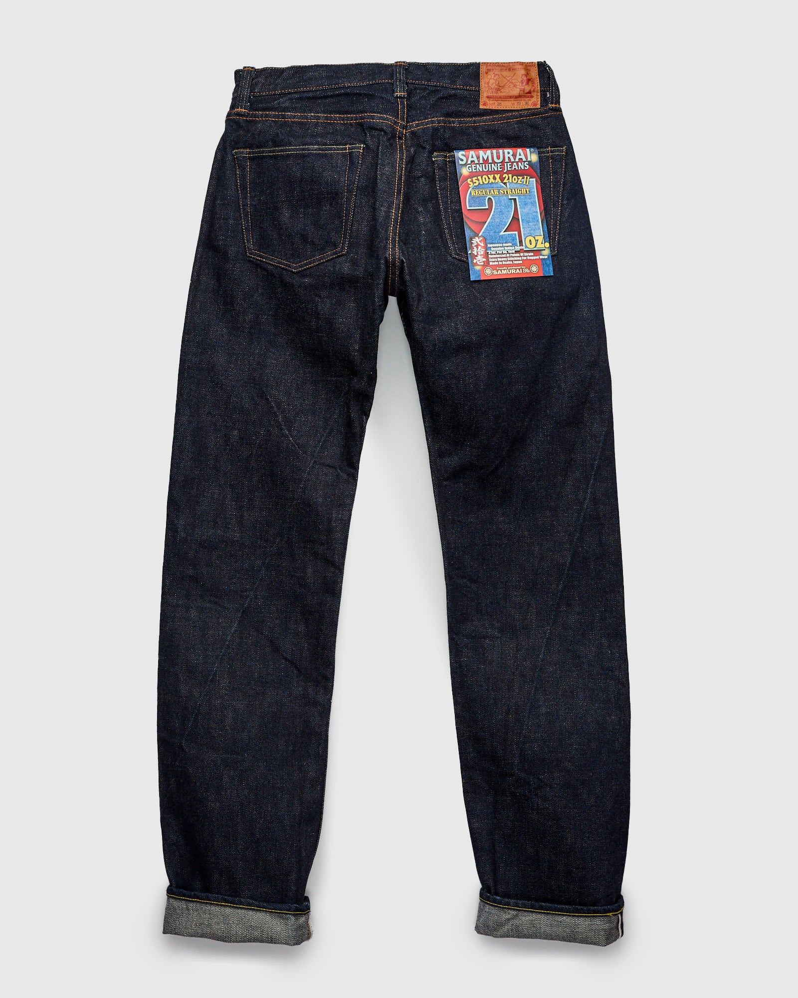 - Samurai's "Cho-Kiwami" selvedge denim is an updated version of the brand's original heavyweight denim. Weighing in at 21oz, this denim was designed as Samurai's toughest denim to date, using a high twist yarn and tight weave for durability. In typical Samurai fashion, the jeans are packed with symbolism referencing the brand's traditional warrior ethos, and come finished with premium details such as raised belt loops, back pocket rivets, and custom branded leather patch depicting the ancient Samurai duel from which the brand takes its name.