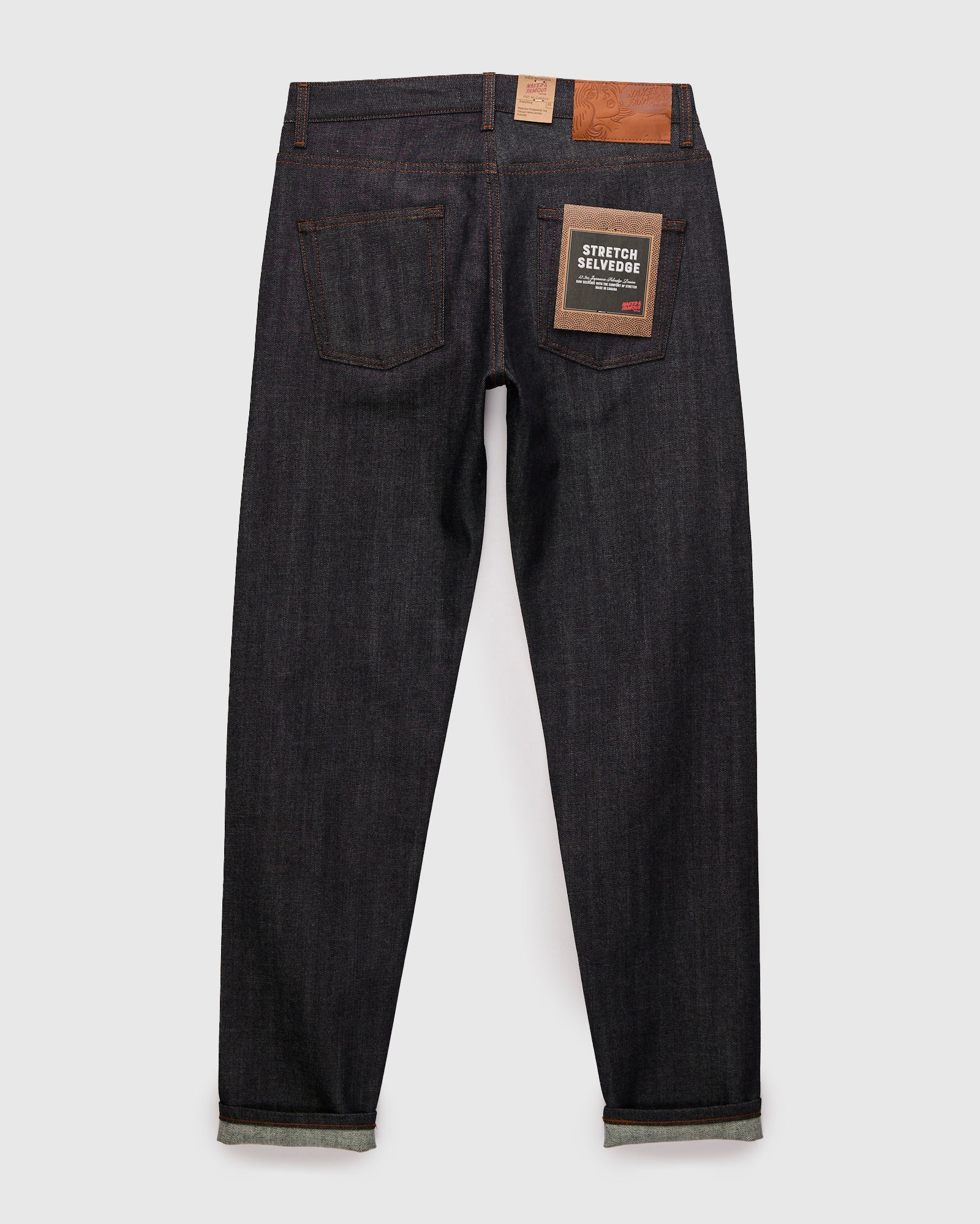 - The "Stretch Selvedge" from Naked & Famous is the brand's flagship indigo stretch selvedge denim, made with 2% elastane for extra comfort and mobility. This sanforized 12.5oz fabric features a classic indigo color that will fade to a vintage blue with wear. Finished with custom Naked & Famous hardware and details.