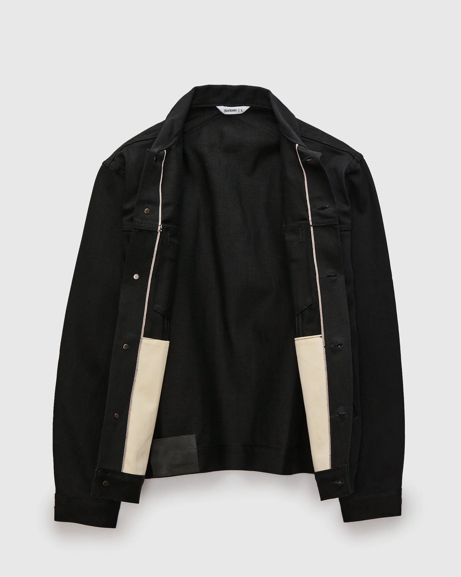 - 3sixteenâs Type 3s Jacket pays homage to the iconic Type III silhouette, updated with the brandâs signature Japanese selvedge denim and contemporary hand. This version is crafted from 3sixteenâs 222x double black - 14.5oz sanforized selvedge denim, custom woven by Kuroki Mill in Okayama, Japan. The fabric features a brushed weft for a soft interior, while preserving the structure and durability expected from raw denim. The jacket is finished with corduroy-lined handwarmer pockets, a crossed back yoke, and subtle corduroy trim.